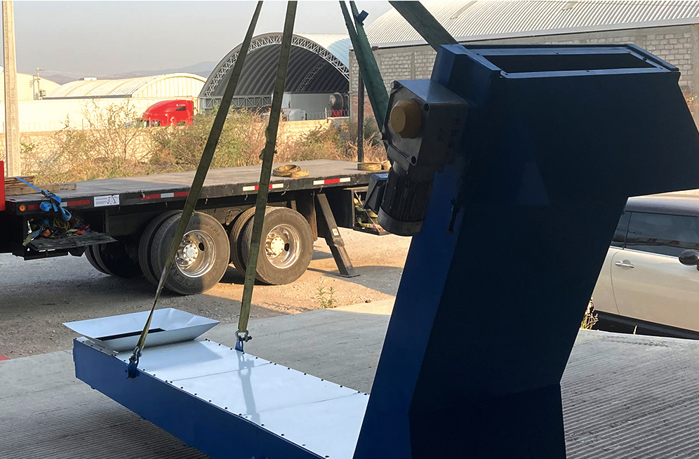 < Coveyor BCTB-365 Diseñado acoplado a medida para la empresa Transportador de banda de arrastre Ronal Group San Luis.